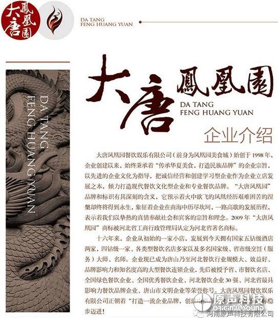 2016年河南原聲一次隅然的機(jī)會(huì),結(jié)識(shí)了河北省餐飲龍頭企業(yè)--唐山大唐鳳凰園,再一次擦出了火花。